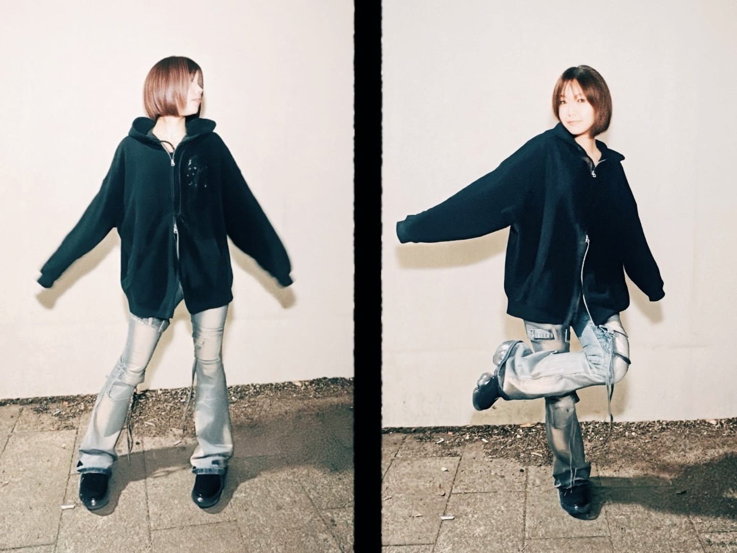 ダブルジップになっているので、下側を開けた着こなしができるところもいい。